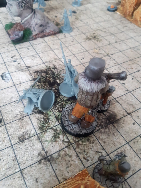 A ce moment de la partie, il reste trois figurines d'un côté et deux de l'autre. On peut enfin envisager de parler du scénario...